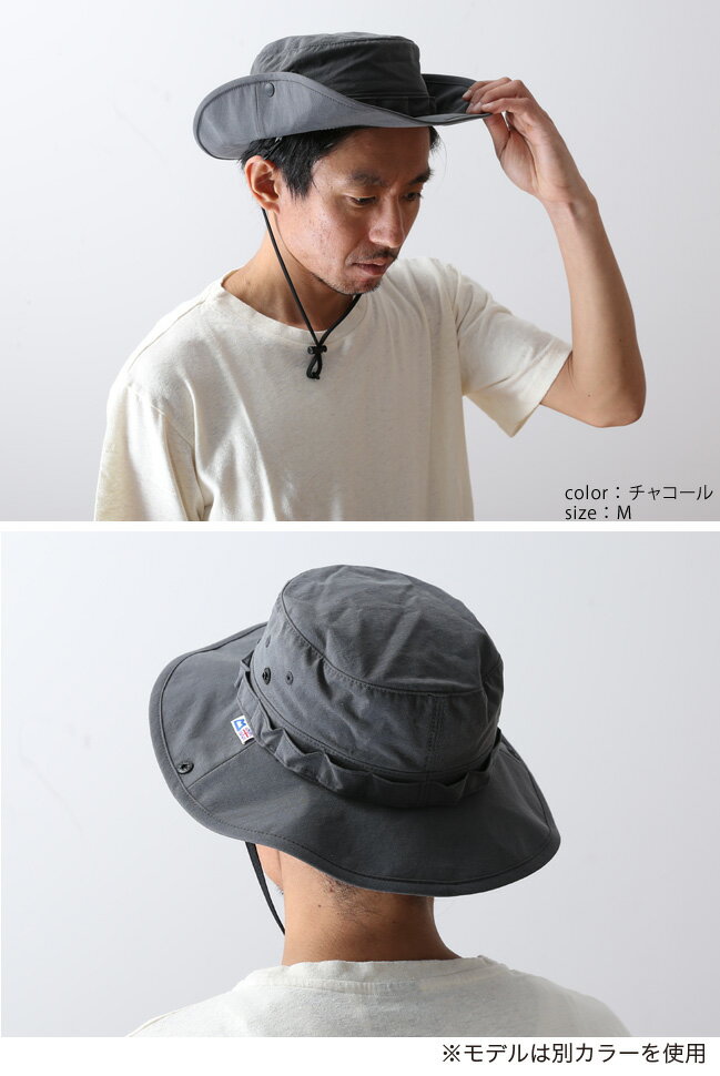 ヴィンテージ加工を施した太番手ナイロン生地のジャングルハット。
