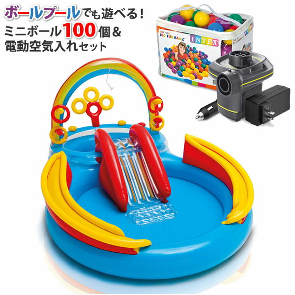 (プール&ボール100個&電動空気入れセット) レインボーリングプレイセンタープール すべり台付 ボールプール 家庭用 プール おうちあそびもできるセット INTEX(ラッピング不可)(快適家電デジタルライフ)