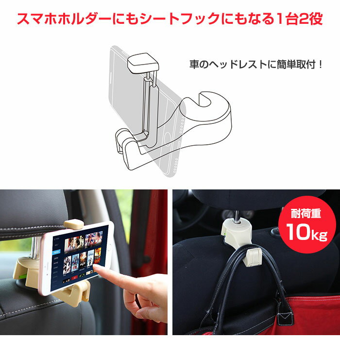 スマホホルダー ヘッドレスト用 後部座席 シートフック 荷物掛け スマートフォン スタンド 車載ホルダー iPhone Android 車用品 カー用品 ◇FAM-CS-G01【定形外郵便】
